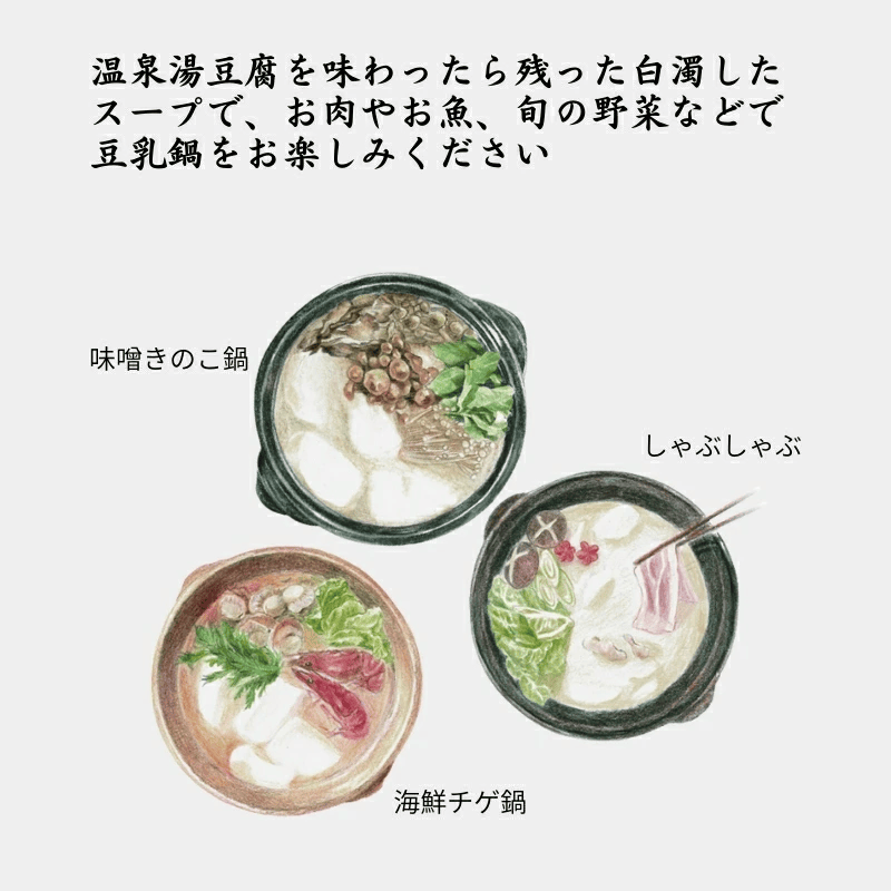 日本三大美肌の湯として知られる嬉野温泉の名物湯豆腐。付属の調理水を用いて湯豆腐にすると、豆腐が溶け出し、汁が白濁して淡雪のような優しい食感が楽しめます。人気の胡麻だれと、雑炊用のきのこ具材付き。名称 嬉野温泉名物 温泉湯豆腐 AK原材料 -内容量 温泉とうふ400g×3、温泉とうふ用調理水1000ml、胡麻だれ150ml、雑炊用きのこ具材40g×2賞味期限 製造日より冷蔵で9日保存方法 冷蔵(10℃以下)注意事項 -梱包サイズ 縦32×横32×高12.5cm