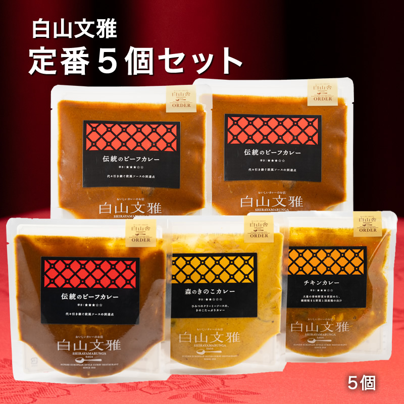 【産直商品】白山文雅 カレー5種食べ比べセット(ビーフ・きのこ・チキン・ジャワ・ハヤシ)
