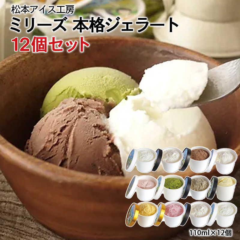 【産直商品】松本牧場本格ジェラート ミリーズ9種+プレミアムミリーズ3種(12個セット) 玄海・松本アイス工房
