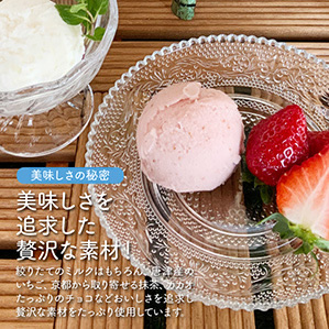 | 原材料 | 【ミルク】:生乳(佐賀県産)、乳製品、グラニュー糖、ブドウ糖/トレハロース、乳化剤、安定剤(増粘多糖類) 【バニラ】:生乳(佐賀県産)、乳製品、グラニュー糖、ブドウ糖/トレハロース、乳化剤、安定剤(増粘多糖類)、香料 【チョコレート】:生乳(佐賀県産)、乳製品、グラニュー糖、チョコレート、カカオパウダー、ブドウ糖/トレハロース、乳化剤、安定剤(増粘多糖類)、香料 【ヨーグルト】:生乳(佐賀県産)、乳製品、グラニュー糖、ブドウ糖/トレハロース、乳化剤、安定剤(増粘多糖類) 【いちご】:生乳(佐賀県産)、いちご、いちごピューレ、乳製品、グラニュー糖、ブドウ糖/トレハロース、乳化剤 【抹茶】:生乳(佐賀県産)、乳製品、グラニュー糖、抹茶、ブドウ糖/乳化剤、安定剤(増粘多糖類) 【黒ごまきなこ】:生乳(佐賀県産)、乳製品、グラニュー糖、黒みつ、黒ごま、ブドウ糖、きな粉(大豆を含む)/トレハロース、乳化剤、安定剤(増粘多糖類) 【熟成焼いも】:生乳(佐賀県産)、芋、乳製品、グラニュー糖、ブドウ糖、塩/安定剤(増粘多糖類) 【みかんシャーベット】:みかん(佐賀県産)、みかんジュース(濃縮還元)、グラニュー糖、みかん皮/安定剤(増粘多糖類) 【いちごシャーベット】:いちご(佐賀県産)、グラニュー糖/安定剤(増粘多糖類) |