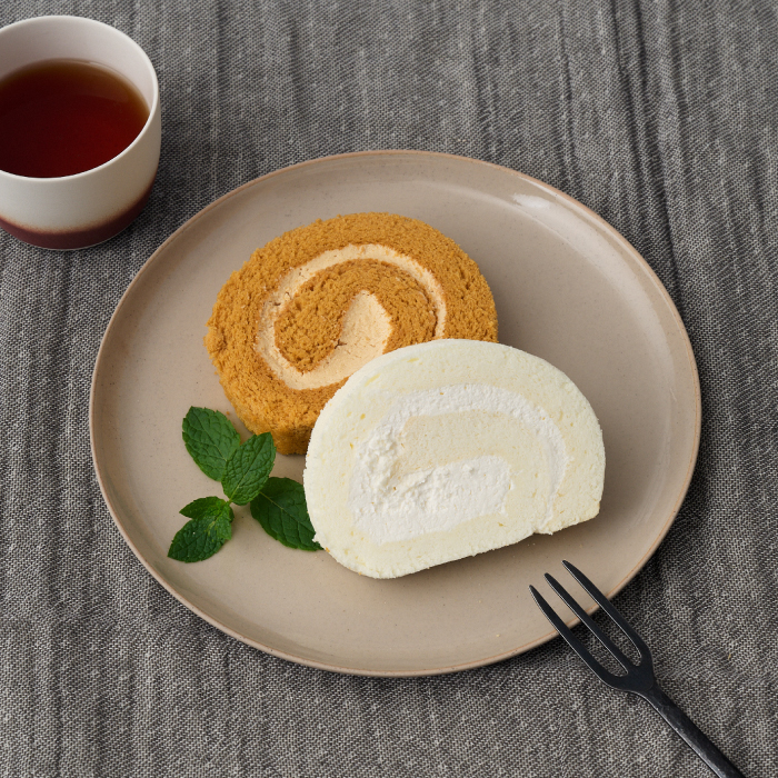ロールケーキは冷蔵解凍で6時間、常温解凍30分〜1時間半程で、クリームが食べごろの柔らかさになります。冷凍状態でお届けしますので、解凍してお召し上がりください。