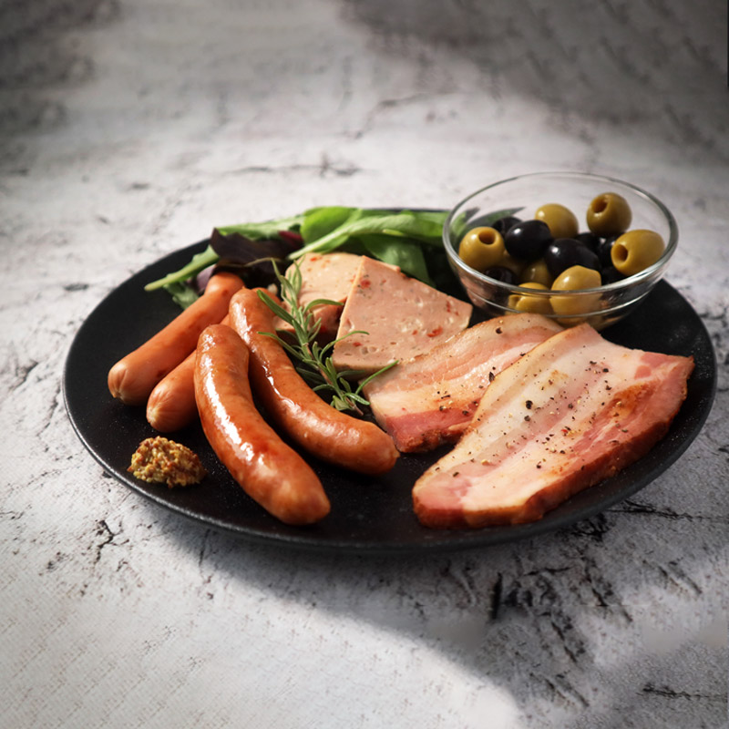 | 内容量 | 燻しベーコンステーキ45g、あらびきウインナー80g、ボックヴルスト80g、リヨナーステーキ(トマト&チーズ)75g×2 |