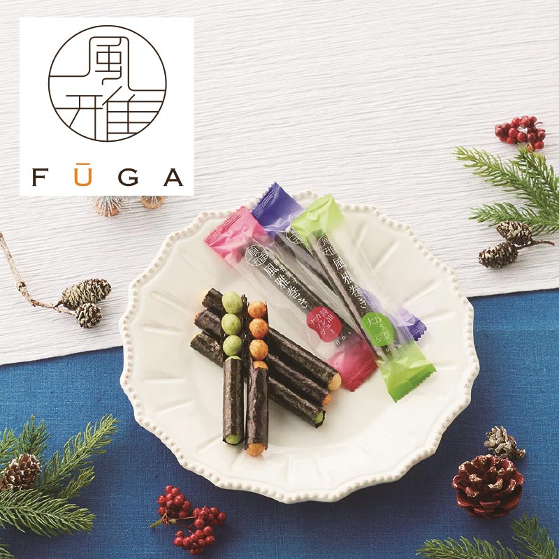| 内容量 | 風雅巻き 醤油大豆・醤油ピーナッツ 各12本、わさび大豆6本、醤油カシューナッツ 3本、塩ピーナッツ 9本 計42本 |