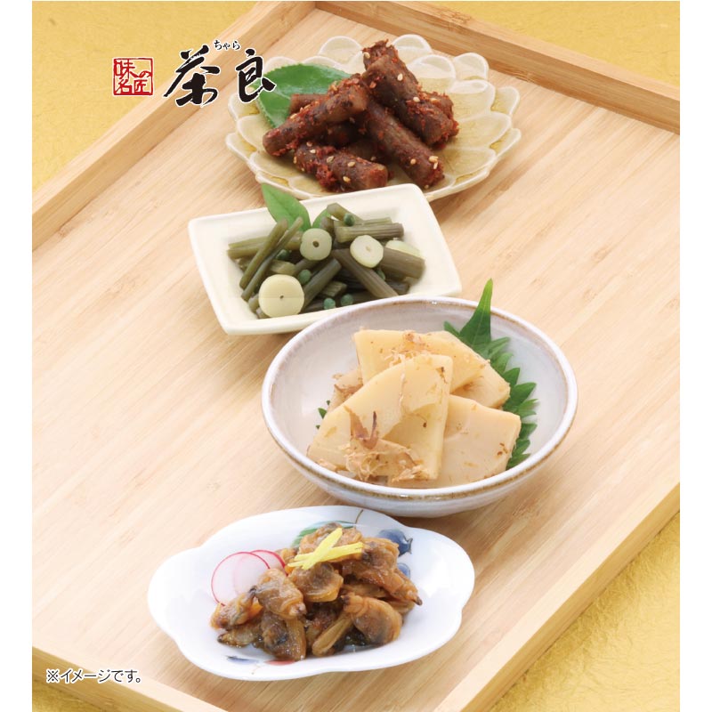 | 内容量 | しいたけ昆布85g×1、ひじきちりめん70g×1、うま煮しいたけ54g×1、やわらか金時豆95g×1 |