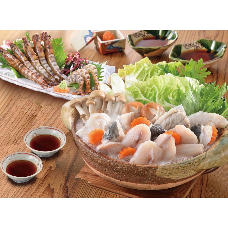 | 原材料 | ちり(加熱用)[トラフグ(長崎県産、熊本県産:養殖)、シロサバフグ(福岡県産、長崎県産)]、車海老[車海老(熊本県産:養殖)、(一部にえびを含む)]、ふくポン酢[醤油(国内製造)、柑橘果汁(橙、かぼす)、醸造酢、米発酵調味料、かつおエキス、昆布エキス、食塩/調味料(アミノ酸等)、(一部に小麦・大豆を含む)]、もみじおろし[大根(国産)、澱粉、唐辛子、こんにゃく粉、梅酢] |