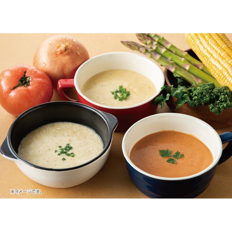 | 内容量 | たっぷりキノコのポタージュ・とうもろこしの贅沢ポタージュ・エビとトマトの濃厚スープ・とろ~り濃厚かぼちゃのスープ・白ネギと生姜の煮込みスープ 各180g×1 |