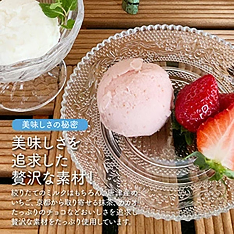 | 原材料 | 生乳、金柑、和三盆糖、芋、いちご、いちごピューレ、抹茶、チョコレート、カカオパウダー、黒みつ、黒ごま、きな粉、みかん、みかんジュース、生クリーム、脱脂粉乳、グラニュー糖、ブドウ糖、塩 |