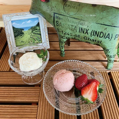 【ミルク】:素朴なミルク感たっぷり!搾りたて生乳の濃厚な味わいをお楽しみください。【バニラ】:まろやかな生乳のコクにバニラがほのかに香る定番のジェラートです。【いちごミルク】:地元産のいちごを贅沢に使用し、あえてつぶつぶ感を残した甘酸っぱくてミルキーな味が特徴です。【抹茶】:京都の老舗宇治抹茶を贅沢に使用し、ほろ苦さとミルクのなめらかさが溶け合った大人の味をお楽しみください。【黒ごまきなこ】:香ばしく、和の香りただよう組み合わせ。白玉に添えるアレンジもおすすめ。【ヨーグルト】自家製生乳から作ったヨーグルトをそのままジェラートに。さっぱり、なめらかな口どけ。