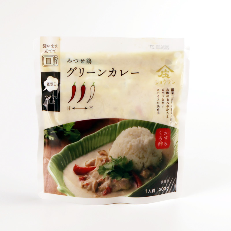 | 内容量 | みつせ鶏グリーンカレー200g×2、みつせ鶏とうふハンバーグトマトソース200g、みつせ鶏とうふハンバーグ豆乳クリームソース200g |