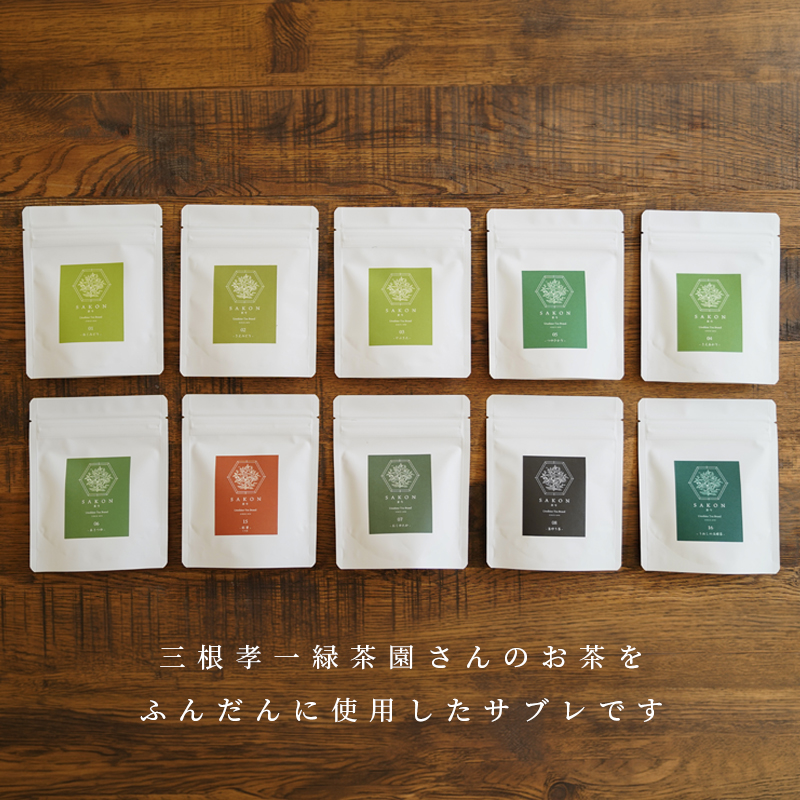 | 原材料 | 小麦粉、バター、マーガリン、砂糖、緑茶、 和紅茶、ほうじ茶、玄米粉末、塩、卵 |