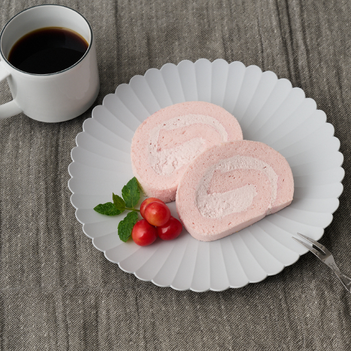 佐賀県産米粉を100%使用した完全グルテンフリーのロールケーキです。ホワイトロールにラズベリーをミックス。甘酸っぱい食感と色合いが女性に人気です。卵の卵白だけを用い、ゆっくり低温で蒸し焼きにする事により、色鮮やかな焼き加減を実現しました。着色料・保存料不使用で安心してお召し上がりいただけます。