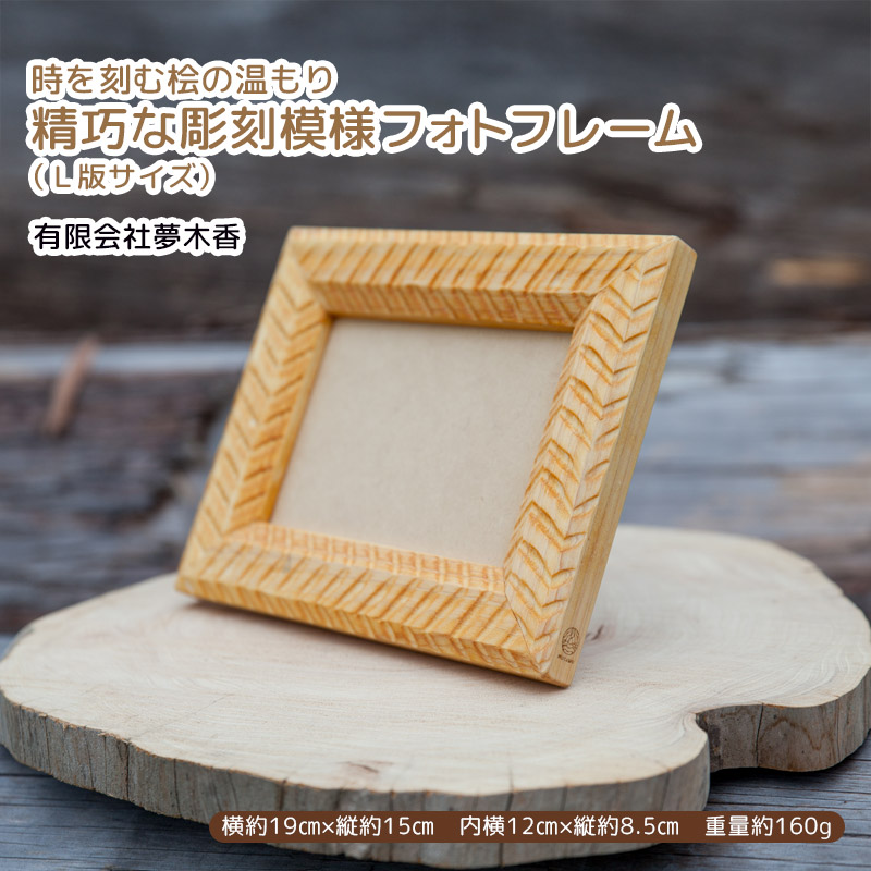 【産直商品】時を刻む桧の温もり - 精巧な彫刻模様フォトフレーム(L版サイズ) 鹿島市・夢木香