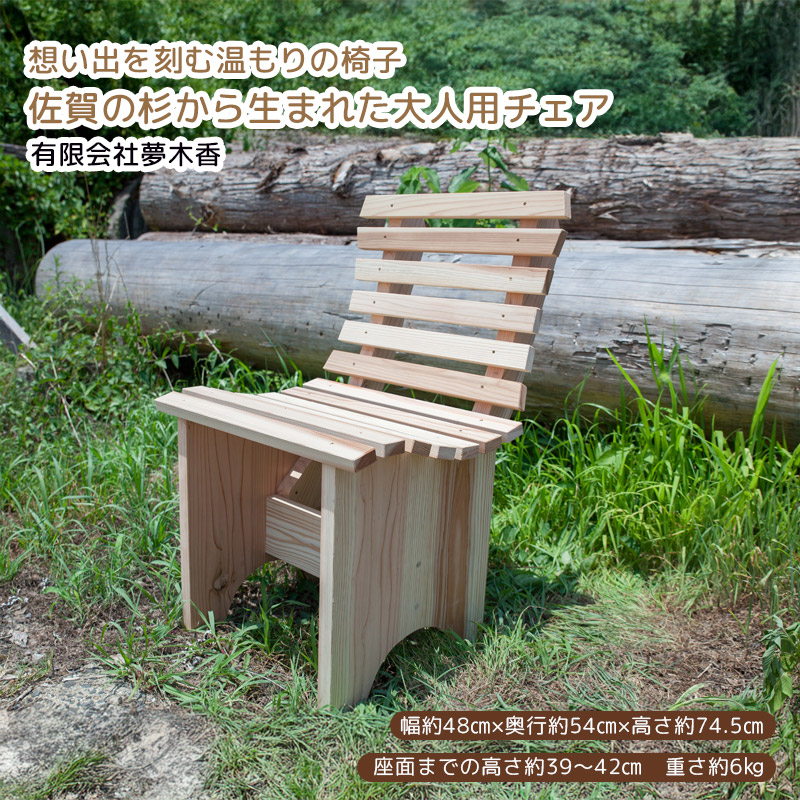 【産直商品】想い出を刻む温もりの椅子 - 佐賀の杉から生まれた大人用チェア 鹿島市・夢木香