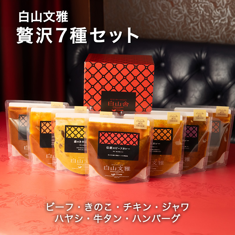 【産直商品】白山文雅 贅沢7個セット カレー ハヤシライス 煮込みハンバーグ