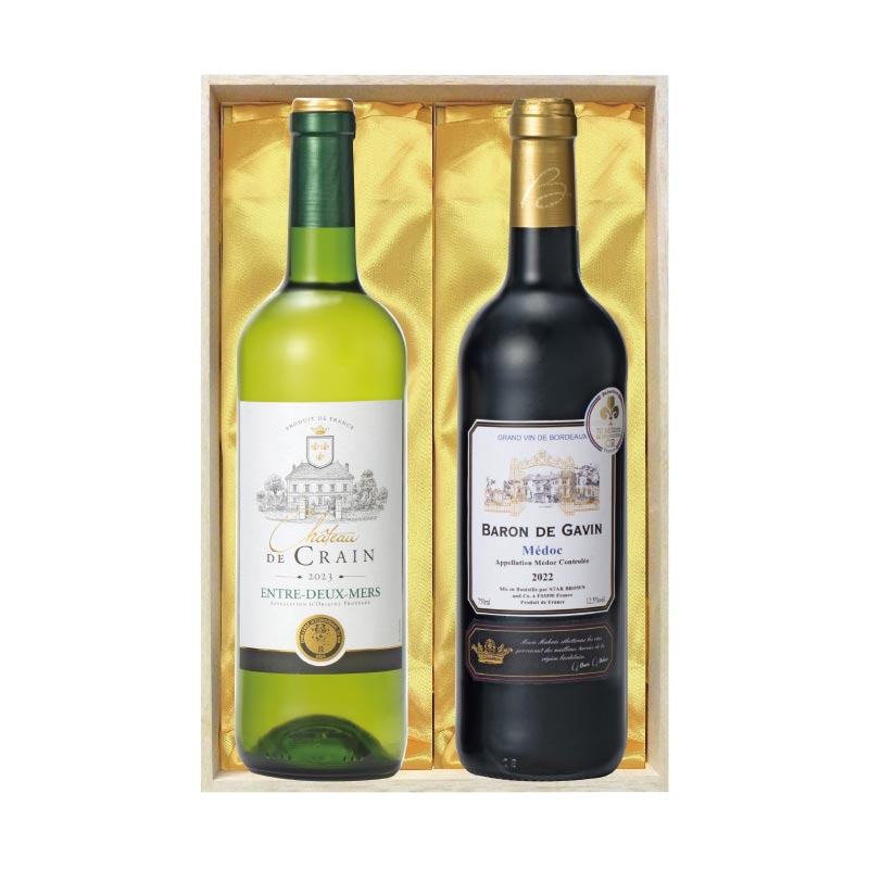 フランスボルドー金賞受賞紅白ワイン2本セット(木箱入)