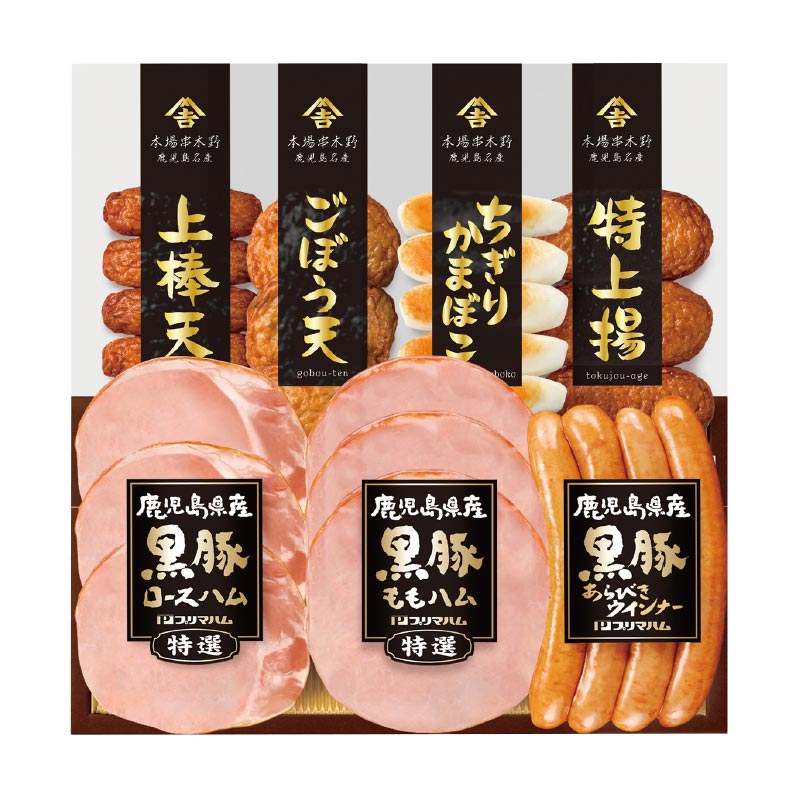 鹿児島県産 恵味の黒豚 ハム&さつまあげセット お届け時期:11月下旬から