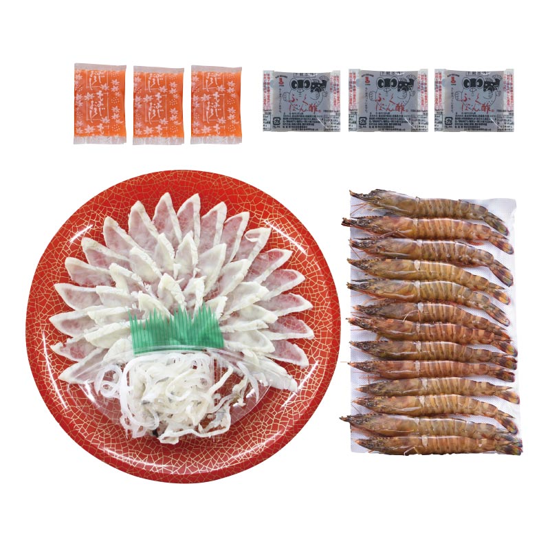 関とら本店 ふくちり鍋と車海老刺身の福満喫セット お届け時期:12月上旬から